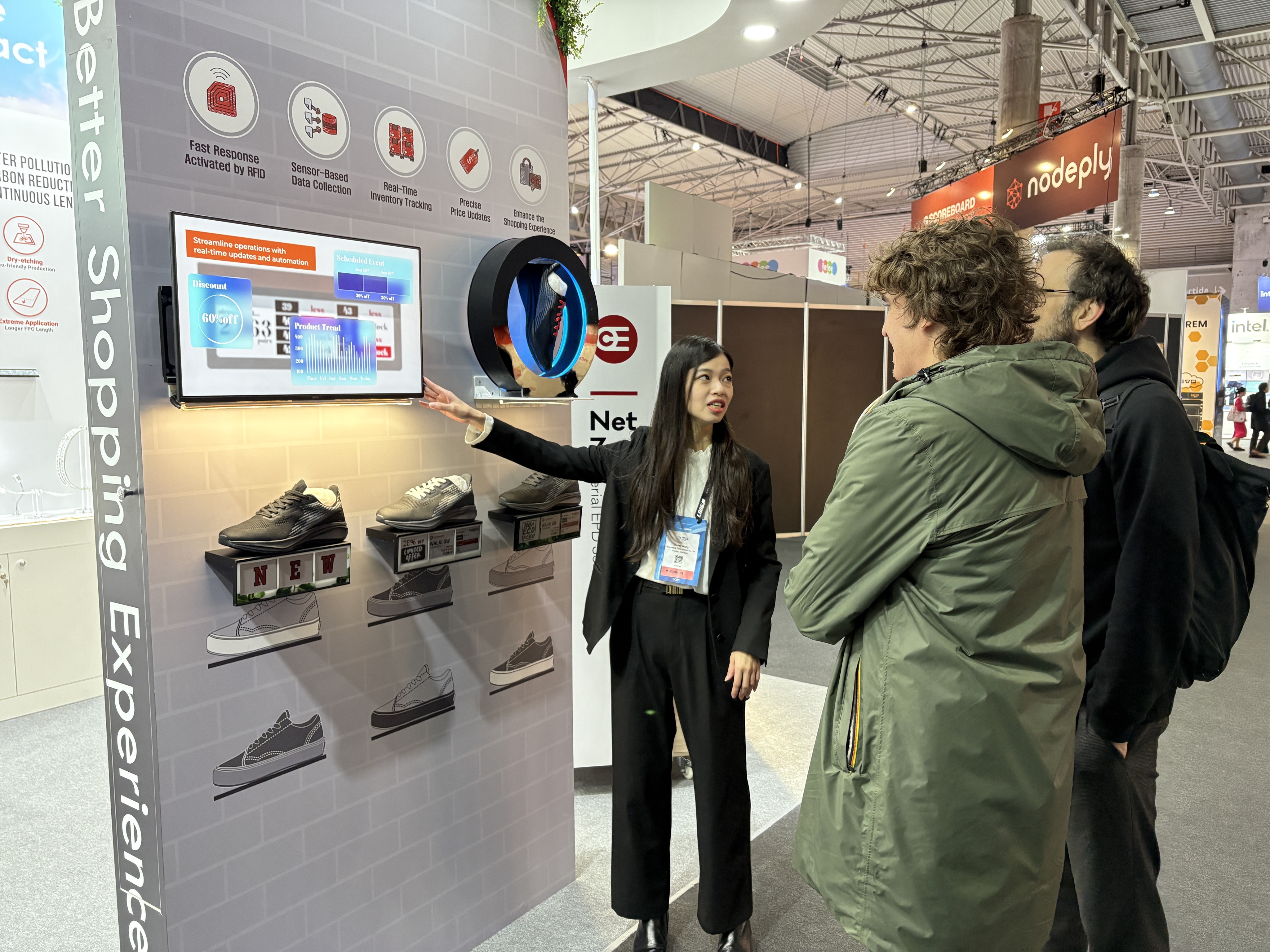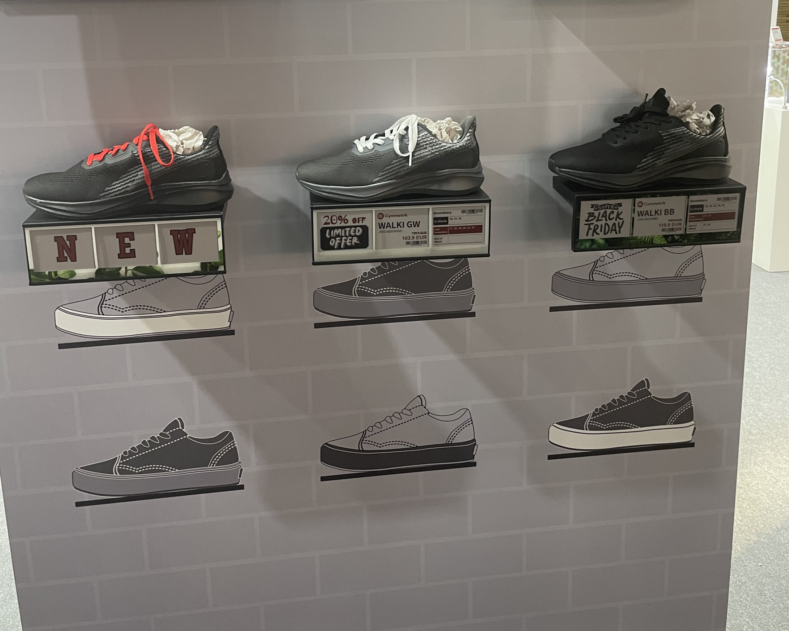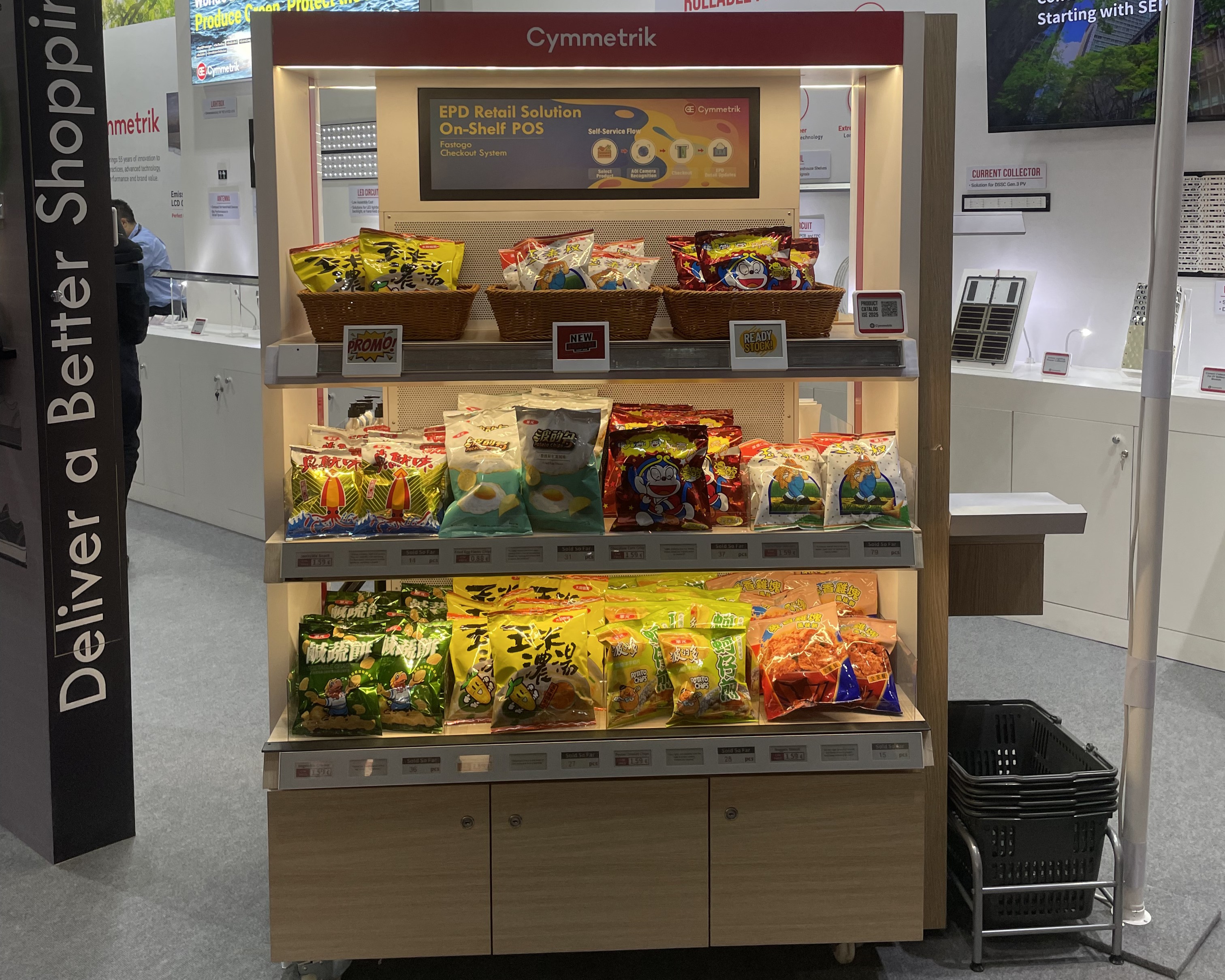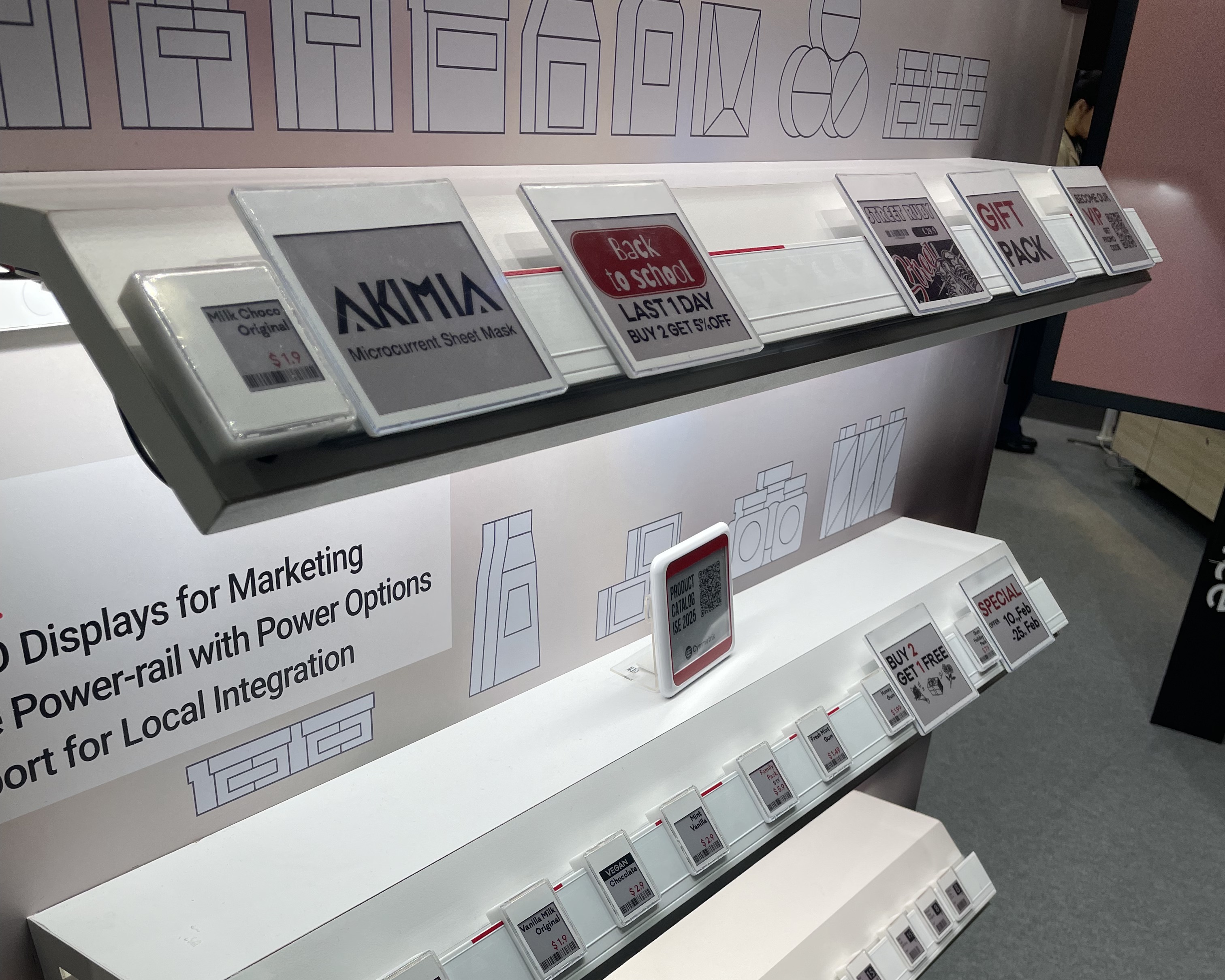 ![]() | e-paper displays integrated with rfip modules, allowing customers to see real time innovatory and promotions. | ![]() | e-paper integrated fast checkout system utilizing aoi sensor for real time interactive displays. |